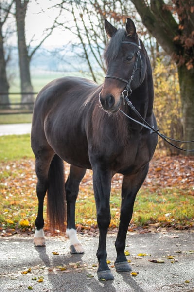 Winnetou, who has recently finished his racing career, is now looking for a new home as a leisure horse. Born in 2017, he stands approximately 1.57 m at the withers, and is very well-behaved in handling, as well as shoeing- and loading-friendly. Currently, we are carefully preparing Winnetou for his debut as a riding horse. He already knows the rider's weight in walk and trot; although he is very sensitive, he remains calm and always tries to do his best. Due to his training level, we are seeking an experienced rider who is not looking for a fully trained riding horse but who wants to develop him further together. We can also see him as a future endurance horse. He is not suitable as a weight carrier. On the lunge, he can canter; under saddle, however, he has not yet mastered this. During the day, Winnetou is in a gelding herd on the pasture, and at night, he is stabled in a box. Price is secondary to his well-being.