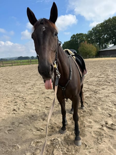 Hallo lieve mensen, Ik ben Achy Breaky Heart, maar ik word Achy genoemd. Ik ben een 5-jarige draver merrie en 1,58 m groot. Mijn eigenaren hebben me zelf gefokt en hoopten dat ik een snel racepaard zou worden. Helaas was het draveracen helemaal niets voor mij en nu zoek ik een heel fijn thuis als recreatiepaard. Ik ben al gereden en dat vind ik heel leuk! Maar ik moet nog veel leren, daarom zoek ik iemand die me nog iets kan bijbrengen. Bodemwerk vind ik ook leuk, ik wil de mensen graag plezieren en doe altijd mijn best. Toen ik nog een jaarling was, had ik een oppervlakkige wond aan de achterkant van mijn linkerbeen. Helaas was daar toen vleesweefsel ontstaan en nu heb ik daar een klein schoonheidsfoutje. Dit bezorgt me echter geen problemen. Dat heeft de dierenarts ook gezegd. Mijn hoeven en tanden worden regelmatig gecontroleerd en behandeld. Ook hier gedraag ik me natuurlijk uitstekend. Als jullie me beter willen leren kennen, kunnen jullie me gerust schrijven! Opmerking: De verkoop geschiedt in opdracht van de eigenaar! Tussentijdse verkoop en fouten voor deze aanbieding zijn uitdrukkelijk voorbehouden!