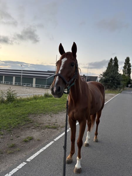 Met veel verdriet heb ik besloten mijn 5 jarige draver ruin Kairos te verkopen. Momenteel wordt hij dressuurmatig doorgereden dit pakt hij goed op. Het is een paard met pit daarom niet voor de onzekere ruiter weggelegd. Aan de hand is hij ontzettend lief. Geef optijd je eigen grenzen aan. Hij houdt van concequentie. Momenteel nu bijna 3 jaar in mijn bezit. Gekocht met 2,5 jaar, zelf zadelmak gemaakt en doorgereden. Hij is verkeersmak, en maakt een leuke sprong. Hier heeft nooit de prioriteit gelegen. Hij kan normaal galloperen en heeft de drafbaan nooit gezien. Kan in een kudde staan. Wil jij met dit fantastische leergierige paard aan de slag! stuur me dan een berichtje wij ontmoeten jou graag! Gaat weg met al zijn toebehoren. De vraagprijs is 4000 euro, maar een goed plekje vindt ik belangrijker.