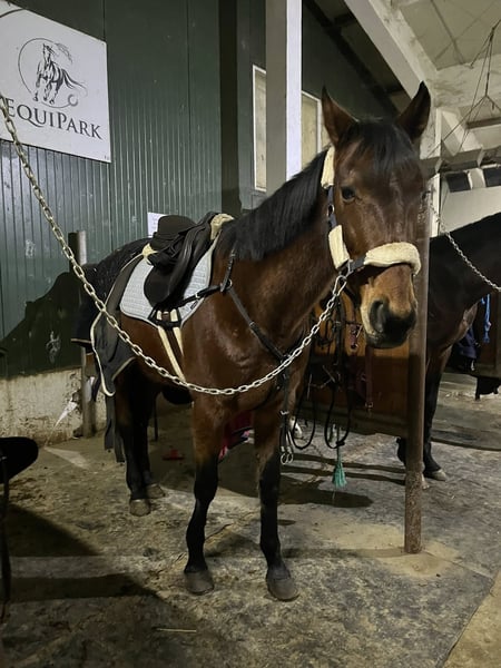 About this horse. Gin is a Danish Warmblood Trotter standing at approximately 167cm. Bred at the wonderful and prestigious facility under the name Stutteri Ice, he has a vrey nice pedigree and shows lots of quality. He was later on imported in Romania where he was used as a lesson horse for intermediate and advanced students where he discovered his hidden talent for jumping. He was started under saddle pretty late in his life and still requires dedicated training for further improvement in sport, but we can guarantee that he is an amazing family/ leisure horse for people looking for a new partner. He is very sweet not only towards humans, but with other horses, being totally safe in a herd. We believe he can also be a good companion for anxious horses. He is currently barefoot and does very good. He is ridden with a snaffle bridle. Gin is also safe to hack. He has a high stamina which can also make him interesting for low-level endurance. He needs to be lunged or ridden at least 3 times a week if he doesn't has access to a paddock (which he would prefer). He is dewormed and vaccinated. A good loving home is required. He won't be given to other sellers or tail-to-nose facilities, only for good families where he can be loved. https://stutteriice.dk/hest/gin-tonic-ice/