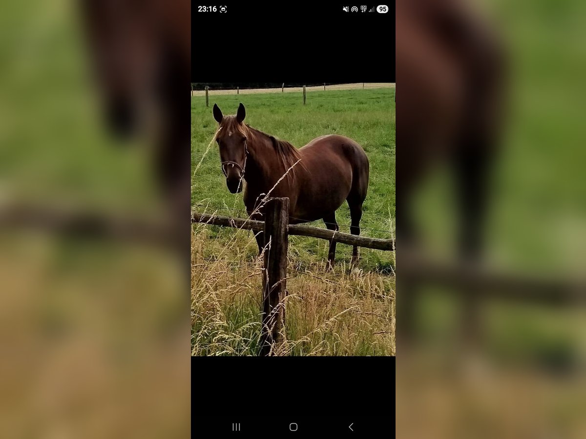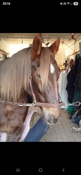 Hey du, ja du! Dich suche ich. Ich soll mich vorstellen? Natürlich mach ich das. Ich bin Puppa. Eigentlich hab ich einen voll langen Namen aber meine jetzigen Menschen sagen immer Puppa. Und mal ganz ehrlich gefällt mir der Name auch wirklich gut. Ich bin nämlich eine wunderschöne 10 jährige ca 1.74m große dunkelfuchs Traberstute. In meinem bisherigen Leben habe ich nie was schlechtes erleben müssen. Ich wurde immer liebevoll behandelt und habe ganz viele Dinge kennengelernt. Ich wollte damals unbedingt Rennen laufen und habe mich ganz doll angestrengt, da ich ja auch jeden zeigen wollte wie toll ich bin. Aber einmal im Training war ich total motiviert und hab mich so sehr konzentriert das ich mit meinem Bein gegen den sulky gestoßen bin. So toll wie ich bin habe ich mir nichts anmerken lassen aber meine Menschen haben trotzdem vorsichtshalber so einen angerufen der sich glaub ich Tierarzt nennt. Der hat dann festgestellt das ich ein Loch in der Obsehne habe. Bei einer nachfolgenden Untersuchung wurde dann noch festgestellt das mein fesselringband an dem Bein auch etwas dicker ist als es normal sein soll aber das merke ich überhaupt nicht. Da ich ja schon im Training gezeigt hatte das ich unbedingt laufen möchte haben meine Besitzer gesagt unsere Puppa darf ein Baby bekommen. Ich kann euch sagen das war eine schöne Zeit. Mein Sohn ist fast genau so schön wie ich , denn schöner wie ich ich geht ja nicht. Meine Menschen haben gesagt ich bin eine ganz tolle Mama. Aber leider ändern sich manchmal Zeiten und meine Menschen haben gesundheitlich wenig Zeit für mich. Sie haben mir gesagt so wenig Beschäftigung habe ich nicht verdient und wünschen sich für mich jemanden der mich genauso so liebt wie sie es tun und ganz viel zeit für mich hat um mich zu beschäftigen. Wie gesagt ich bin auch eine ganz tolle Mama. Vor ein paar Tagen haben sie so ein komisches Ding auf mich gelegt. Ich glaube sie haben Sattel dazu gesagt . Das war natürlich kein Problem für mich, selbst mit einem Reiter oben drauf bin ich voll cool geblieben. Ich bin ja schließlich die Puppa. Wenn du Lust hast mich kennenzulernen komm doch einfach in Gelsenkirchen vorbei aber bring mir bitte ein Bonbon mit , ich bin ja schließlich eine verwöhnte Puppa. Da ich bestechlich bin sollten 27🥕🥕reichen. Aber meine Menschen sagen immer es geht auch weniger wenn ich ein Zuhause bekomme wo ich für immer bleiben darf. Lieben Gruß eure Puppa
