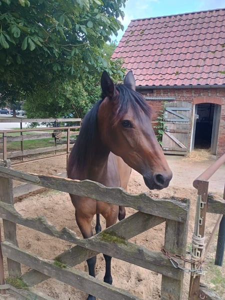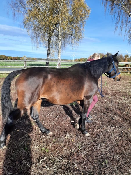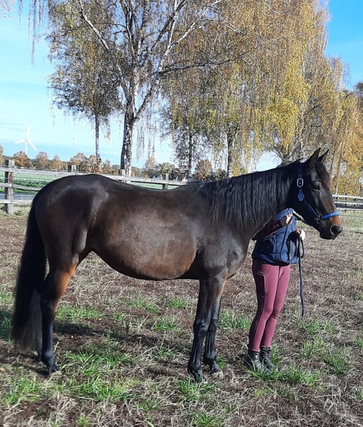 Geboren: 05/2021 Stockmaß: ca. 1,58 m Rasse: Traber Geschlecht: Stute, barhuf Menschenbezogene, charakterstarke 4-jährige Traberstute zu verkaufen. Leicht angeritten, aktuell überwiegend Bodenarbeit (Geitner, Longe, Folgearbeit) – motiviert und lernwillig. Kennt Spaziergänge allein und in der Gruppe. Gute Grundgangarten, Galopp problemlos, zeigt Potential am Sprung. Im Umgang brav, reagiert fein auf Stimme, unkompliziert bei Hufbearbeitung und Gelassenheitstraining. Kein Anfängerpferd – braucht eine feste Bezugsperson und kompetente Führung. Haltung aktuell: nachts Box, tagsüber Paddock, im Sommer gerne Weidegang. Gesund, AKU (04/2025) ohne Befund. Videos bei ernsthaftem Interesse. Platz vor Preis, Zubehör vorhanden. Nur in beste Hände.