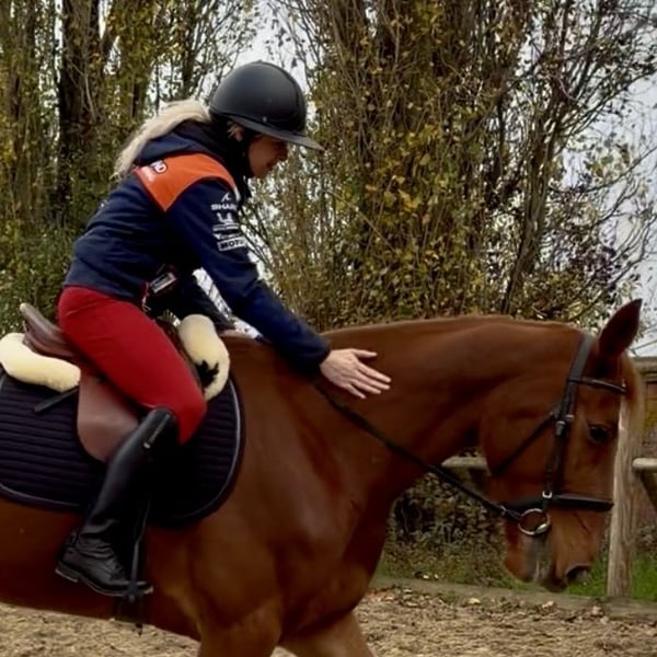 À vendre – Jument de 6 ans Jument alezane de 6 ans, 1m66 au garrot, pieds nus. Très agréable sous la selle, elle débute idéalement une reconversion orientée loisirs. Jument appliquée, avec une excellente capacité d’apprentissage, elle a déjà sauté une barre montée. Très douce au quotidien, elle conviendra à un cavalier confirmé ou à un bon cavalier encadré souhaitant poursuivre son évolution dans le calme et la bienveillance.