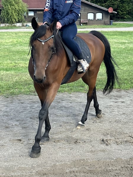Jj ist eine kleine, kompakte 7-jährige französische Traberstute. Sie wurde schonend angeritten und ist nun bereit ihren weiteren Weg als Freizeitpferd fortzusetzen. Das Galoppieren lernt sie gerade. Sie ist Schmiede- und verladefromm,, regelmäßig geimpft und entwurmt. Die Stute ist sehr lernwillig und lässt sich prima Händeln.