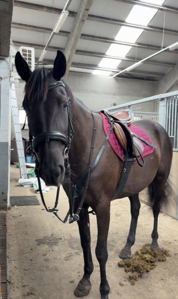Hier ist J’adore, eine äußerst brave 6-jährige Stute. Ich habe sie vollständig selbst ausgebildet, was sehr unkompliziert verlief. Sie ist ein äußerst angenehmes Freizeitpferd und die Grunddressur beherrscht sie ebenfalls. Sie kennt Schritt, Trab, Galopp und läuft auch schon schön nachlässig. Ob alleine oder in der Gruppe, beide Varianten sind auf belebten Wegen problemlos möglich. Auch zügelloses Reiten im Gelände oder auf der Bahn ist für sie perfekt – ich bin schon ohne Sattel und bitless geritten! Sie ist sehr kinderlieb und sozial im Umgang. Sie ist es gewohnt, rund um die Uhr draußen zu stehen, mit einem Unterstand in einer großen Herde, und zeigt gegenüber den anderen Pferden keinerlei Dominanz. Beim Freispringen hat sie bereits etwa 105 cm überwunden. Kurz gesagt, ein ideales Freizeitpferd, um gemeinsam zu wachsen und entspannte Ausritte zu genießen. Hast du Interesse an dieser wunderschönen Stute? Dann schicke mir unbedingt eine Privatnachricht für weitere Infos.