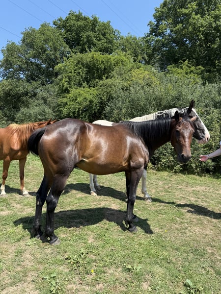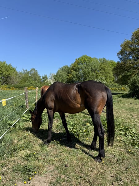 Par manque de temps et moyen, je me retrouve dans l’obligation de trouver une nouvelle maison pour ma jolie J’adore de Viette. Jument Trotteuse Français, toise environ 1m60 au garrot. Elle a 7 ans cette année. C’est une jument très gentille et douce avec l’homme, très bien dans sa tête. J’adore était Trotteuse de course jusqu’en 2023 puis est devenue jument de balade/de compagnie. Jument avec peu de travail en selle, elle a fait principalement de la balade seule aux trois allures. Elle aurait besoin d’une remise au travail si volonté de faire autre chose que de la balade. Elle vit en prairie avec ses congénères sans problème. Monte en van et petit camion sans problème, elle a vu le dentiste en Mars et l’ostéopathe en avril)