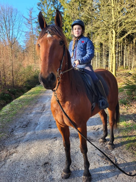 Liebes Stütchen, mit Temperament, sucht ein schönes Zuhause, wo sie gut zur Geltung kommt. Ich finde sie kein Anfängerpferd, aber wenn du gut reiten kannst, kannst du viel Freude mit ihr haben. Sie zeigt kein typisches Stutenverhalten, springt gerne, auch wenn wir das noch nicht unter dem Sattel gemacht haben. Wirklich ins Gelände gegangen ist sie noch nicht. Es ist ein ganz tolles Tier für einen Reiter, der etwas Temperament sucht.