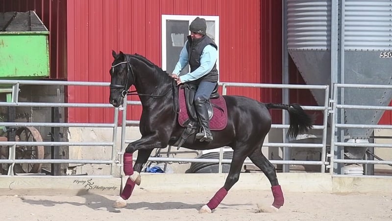 ONLINE-AUKTION Bieten Sie jetzt unter www.PlatinumEquineAuction.com Startgebot: 3.500 USD Auktionsende: 22. Juni 2025 Benötigen Sie ein neues Sattel? Schauen Sie bei White Rock Saddles auf unserer Website oder Facebook vorbei! Smoke ist ein 6-jähriger, reinrassiger niederländischer Wallach mit einer Größe von ca. 1,52 m. Er ist sehr beweglich und ein echtes Naturtalent für Dressur und englisches Vielseitigkeitstraining. Smoke reitet englisch, wurde western geritten und fährt auch Kutsche. Er ist ein vielversprechender Nachwuchs und bereit, in seinem Training den nächsten Schritt zu machen! Mit seinem tiefschwarzen Fell und den markanten Abzeichen zieht Smoke alle Blicke auf sich. Er wurde sowohl in der Halle als auch im Freien geritten, auf der Straße und im Gelände. Er ist verkehrssicher. Smoke hat bereits viele Eindrücke gesammelt und zeigt sich auch außerhalb der Arena zuverlässig. Er überquert Wasser, Logs und bewältigt Hindernisparcours. Er kommt gut mit Pausen zurecht und lässt sich problemlos satteln und reiten. Smoke besitzt die Ausdauer und Kondition, um Leistung zu zeigen, und arbeitet sehr willig unter dem Sattel. Er macht schnelle Fortschritte bei den Manövern und ist ein eleganter Kandidat für den Turniersport. Er kommt gut mit Stall- oder Weidehaltung zurecht und versteht sich mit anderen Pferden. Für den Schmied ist er ein vollständiger Gentleman und sehr leicht zu beschlagen. Der freundliche Wallach ist im Umgang sehr angenehm, lässt sich gut am Boden führen und steht geduldig quer angebunden sowie beim Aufsatteln. Für einen fortgeschrittenen Reiter ist er ideal, um seine Ausbildung weiter zu vertiefen. Unter dem Sattel fühlt sich Smoke am wohlsten, und dort wurde auch der Schwerpunkt seiner Ausbildung gelegt. Sein eleganter Stil fällt sofort ins Auge! Wenn Sie auf der Suche nach einem schönen Dressurpferd oder Freizeitpartner sind, sollten Sie Smoke nicht verpassen. Er ist aktuell auf Coggins-Test und hat eine Untersuchung auf Röntgenbilder vorliegen. Bei Fragen oder wenn Sie Smoke vor Ende der Auktion persönlich kennenlernen möchten, rufen Sie bitte Edwin Raber unter 319-283-0616 an. Standort: Fairbank, Iowa.