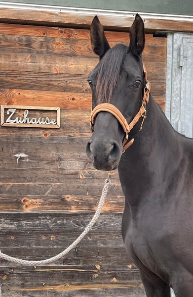 As we are shifting our breeding focus, we are offering our wonderful Kabardian broodmare Bahira for sale. Bahira is a stunning black mare with an excellent temperament, and she is a caring and outstanding mother. Artificial insemination is straightforward, pregnancy is uncomplicated, and all her foalings have been equally smooth. We have three beautiful foals from her. The foals are half-bloods, as we have always bred her with full-blood stallions. She holds an Anglo-Kabardian passport issued by the Bavarian Breeding Association, where she is also registered in Breeding Book 1. Bahira is regularly dewormed, has seen the dentist, and is fully vaccinated. She has been ridden by her previous owner, but with us, she has only been used as a broodmare; she has not been ridden in our program. She has been worked on the longe or from the ground.