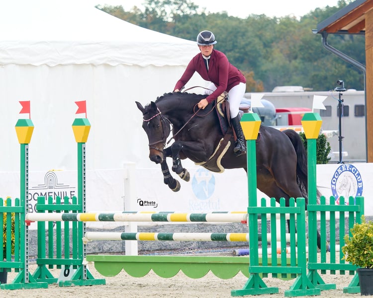 Nom : Veni Vidi Vici Née : 2019 Sexe : Jument Taille : 1,63 m Niveau : Entraînement – 115 cm, Concours – 110 cm Localisation : Bucarest, Roumanie Prix : Sur demande Description : Veni Vidi Vici est une jument douce et volontaire, dotée d’un mode de déplacement naturellement actif. Elle possède une personnalité agréable et motivée — toujours à l’écoute de sa cavalière et donnant le meilleur d’elle-même. Actuellement en progression jusqu’à 115 cm à l’entraînement et en compétition à 110 cm, elle montre un potentiel évident pour évoluer en toute confiance vers 125–130 cm avec la bonne cavalière. Elle n’est pas une monture pour débutants, mais constitue un partenaire idéal pour une cavalière amateur expérimentée ou une cavalière souhaitant développer ses compétences, notamment celles qui apprécient un modèle dynamique, avec un rythme naturel et de l’enthousiasme. Son mouvement est expressif et souple, ce qui la rend adaptée non seulement au saut d’obstacles, mais aussi aux amateurs qui aiment le travail en dressage ou souhaitent combiner les bases du dressage avec le saut. En épreuves de vitesse, elle brille vraiment — courageuse, rapide et naturellement efficace entre les obstacles. Veni Vidi Vici serait une partenaire idéale pour une jeune cavalière ou une cavalière motivée à la recherche d’une jument douce, réactive et pleine de potentiel pour évoluer avec elle. Un caractère charmant et un véritable plaisir à avoir en pension. 🐎✨