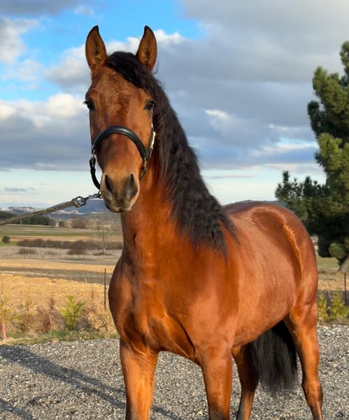 Afortunado is a stunning young PRE stallion with full registration and a compact, baroque type that immediately captures attention. With his expressive face, naturally striking "eyeliner" eyes, and incredibly charming expression, he looks like a horse from a fairytale – and is also extremely photogenic. This young stallion impresses not only with his extraordinary appearance but also with his very sweet, human-oriented character. Tamar is very friendly, gentle, and easy to handle in daily interactions, and already shows motivation and willingness to learn during work. • Pure Spanish Breed (PRE) with full papers • Stallion • Born: 07/2023 • Current height: approx. 1.50 m (15 hh) • Expected final height: approx. 1.55 m (15.2 hh) ✔ Clear X-rays available ✔ Negative for piroplasmosis ✔ Already backed ✔ Extremely gentle and sweet in character ✔ Very easy to handle ✔ Human-oriented and motivated to work His particularly sought-after size in XXL pony / small horse format makes him especially interesting. Many riders are looking for a compact horse with charisma, strength, and elegance in this size range. Afortunado combines baroque beauty, an excellent character, and a rare size – a truly special opportunity to find a PRE with this unique combination of look, temperament, and stature. 📍 Location: Spain 📩 Feel free to contact us for videos and more information 🚚 Worldwide transport can be arranged