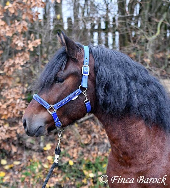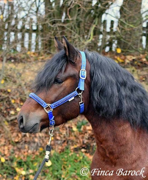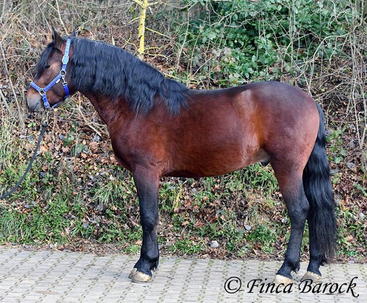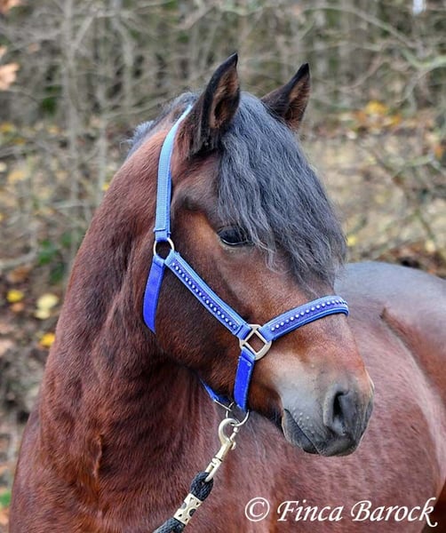 Rasse: Warlander Name: Flamenco Geschlecht: Wallach Stockmaß: 160 cm Alter: 15.04.2022 Farbe: Braun Preis: 8700 € Vater: o. P. Mutter: o. P. Flamenco <3 Der Name passt perfekt zu dem hübschen, kompakten Buben mit Schmusecharakter. Mit seinen schönen schwarzen Augen und der kohlrabenschwarzer Mähne ist er ein echter Hingucker. Flamenco ist eine gelungene Anpaarung aus Andalusier x Friese. Passend zu seinem Namen bringt er einen Bewegungsstarken Trab mit und eine tolle Bergaufgaloppade. Er ist mit Sattel und Trense am Kappzaum longiert und wird Stück für Stück auf das Leben als Reitpferd vorbereitet. Im Umgang zeigt er sich hoch anständig, neugierig und sehr verschmust. Insgesamt ist er verspielt. Er bleibt auch sehr unerschrocken wenn er beim Freilaufen in der Halle Sachen von der Band holt und diese vor die Hufe fallen. Er freut sich über neue Aufgaben und arbeitet gerne mit. Mit Flamenco hat man einen echten tollen Rohdiamanten der sich darauf Freut die Welt zu entdecken. inkl. klinischer tierärztlicher Untersuchung und Röntgenbildern Kontakt: Finca Barock, Tel. 0173-696 31 81, 56291 W