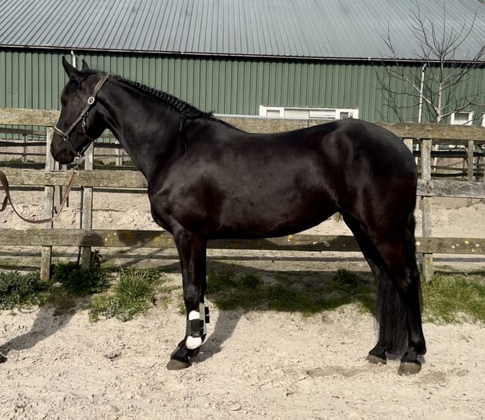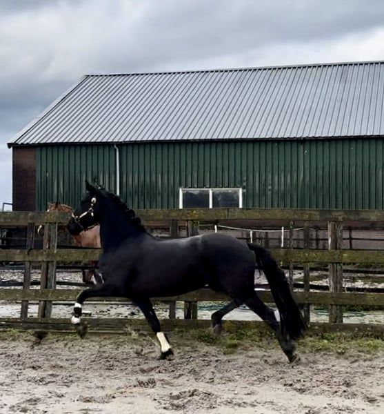 Hele gave 4,5 jarige PRE X Fries gitzwarte merrie ze is 160 groot met veel body en zal zeker nog wat groeien. Libby kan extra bewegen en heeft 3 hele goede gangen. Ze is op wat longeren na nog groen en nog helemaal onbeleerd. ze is in het bezit van een paspoort. Lief paard