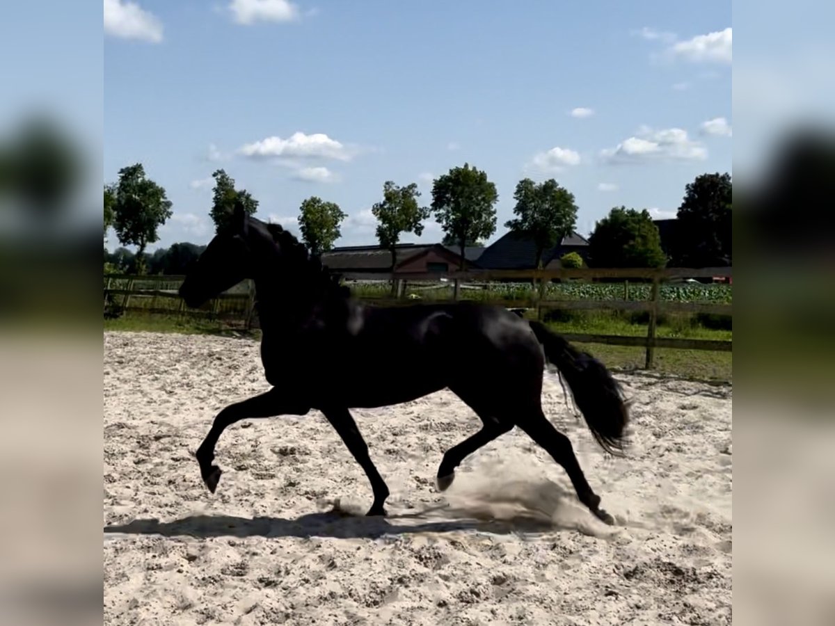 Hele gave 4 jarige PRE X Friese 4 jarige gitzwarte merrie ze is 160 groot met veel body en zal zeker nog wat groeien. Libby kan extra bewegen en heeft 3 hele goede gangen. Ze is op wat longeren na nog groen en nog helemaal onbeleerd. ze is in het bezit van een paspoort.