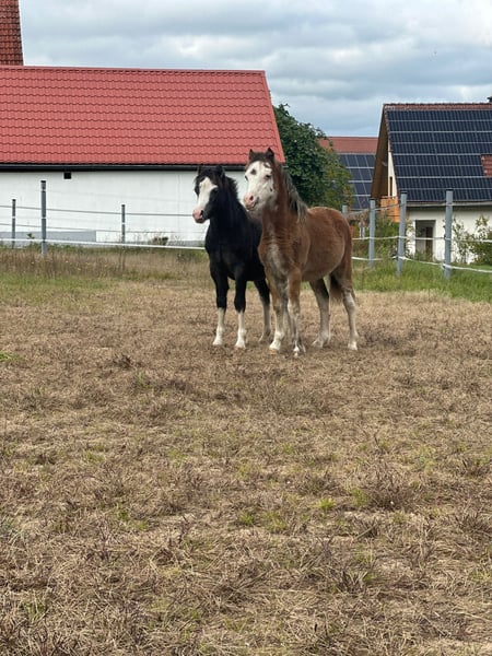 Zwei Welsh A Hengste (geb. März 2025) – wenn möglich zusammen abzugeben, muss aber nicht. Schweren Herzens müssen wir uns wegen eines familiären Schicksalsschlags und finanzieller Gründe von unseren beiden Welsh A Hengsten trennen. Die Entscheidung fällt uns nicht leicht – die beiden sind uns sehr ans Herz gewachsen. Earwin und Hiro stammen vom gleichen Züchter. Earwin der Fuchs mit breiter Blesse ist ein unglaublich lieber, kinderfreundlicher kleiner Hengst. Leider hat er gesundheitliche Baustellen (Durchtrittigkeit, steht vorne auf den Zehen, braucht orthopädische Hufeisen bzw. eventuell eine OP, seine Zähne müssen leider jeden Tag kontrolliert werden) und sollte daher am besten als Beistellpony gehalten werden. Er ist trotz allem ein absoluter Schatz mit tollem Charakter. Abstammungsnachweis: https://www.allbreedpedigree.com/calanmai+earwyn Hiro der dunklere ist anfangs vorsichtig, taut aber mit Geduld auf und zeigt sich dann als echter Schmuser. In erfahrenen Händen wird er sicher ein wunderbarer Partner. Sein Vater war erfolgreich vor der Kutsche. Abstammungsnachweis: https://www.allbreedpedigree.com/calanmai+heulog Beide sind im März 2025 geboren, kennen den täglichen Umgang und sind altersgerecht entwickelt. Bei ernsthaftem Interesse oder für mehr Infos meldet euch gern eine Nachricht, wir erzählen euch alles Weitere über die beiden und wünschen uns ein liebevolles Zuhause für sie.