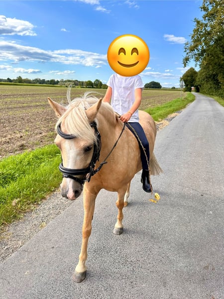 Welshliebhaber aufgepasst! Zum Verkauf steht unser 11-jähriger schöner Palomino Welsh A Wallach. Da wir umsteigen möchten auf ein größeres Pony, müssen wir uns leider von ihm trennen. Er ist mit viel Go ausgestattet von daher ist er nicht als reines Anfängerpony geeignet. An der Longe mit Anfänger ist er jedoch sehr geduldig und vorsichtig. Beim Reiten testet er aber schon mal gerne seine Grenzen von daher braucht er einen erfahrenen Reiter. Im Umgang ist er sehr lieb und geduldig und gibt auch gerne das 10x die Hufe. Zubehör inklusive (neuwertiger Sattel, Trensen, Winter-, Regen-, Abschwitzdecke, Gamaschen).
