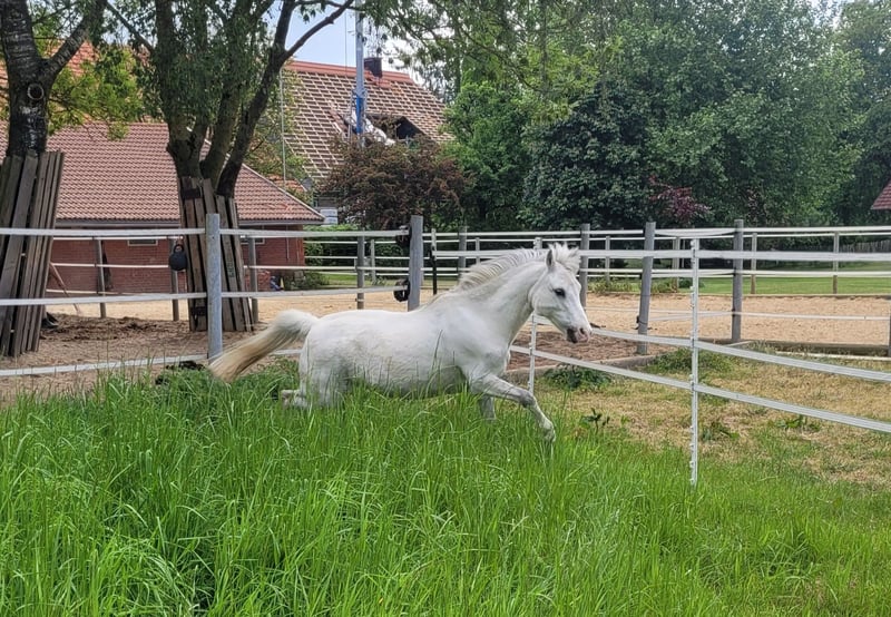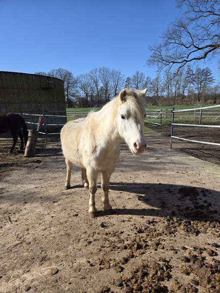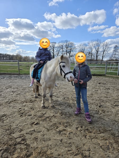 Schweren Herzens haben wir uns entschieden unseren 13-jährigen Welsh-A Wallach Togolino zu verkaufen. Er ist 120 cm groß und war für meine 7-jährige Tochter gedacht, aber leider ist das Interesse einfach nicht groß genug, so dass wir ein tolles neues Zuhause für ihn suchen, in dem er wieder mehr Ansprache erfährt und noch ein Kind glücklich machen kann. Togolino lässt sich brav von Kindern führen, reiten und putzen. Meine Tochter hat ihn hauptsächlich geführt im Gelände und auf dem Platz an der Longe geritten. Dabei ist er sehr brav und hat ein eher gemütliches Tempo, selbst wenn er länger nicht bewegt wurde. Er beißt nicht, tritt nicht, buckelt nicht und ist sehr verträglich mit anderen Pferden. Zu beachten ist, dass Togolino ein eher zurückhaltendes und ängstliches Wesen hat. Er braucht Zeit, sich an neue Menschen und neue Dinge zu gewöhnen. Er braucht feste Bezugspersonen und wird auf keinen Fall an eine Reitschule verkauft. Im Moment lebt er im Offenstall in einer Wallachherde, er kennt aber auch Boxenhaltung mit Weidegang. Togolino läuft barhuf, ist geimpft und wird nach Beprobung entwurmt (laut letzter Untersuchung ist er wurmfrei). Die Zähne sind gerade noch gemacht worden. Er war hier immer gesund. Er koppt zwar, aber das bereitet ihm keine Probleme. Die gesamte Ausrüstung wird kostenlos mit abgegeben, da unser weiteres Pony zu groß dafür ist. Insgesamt gilt: PLATZ vor PREIS Bitte nur ernstgemeinte Anfragen, gerne auch über WhatsApp oder telefonisch: 0173 9447804. Bei Interesse können auch Videos verschickt werden.