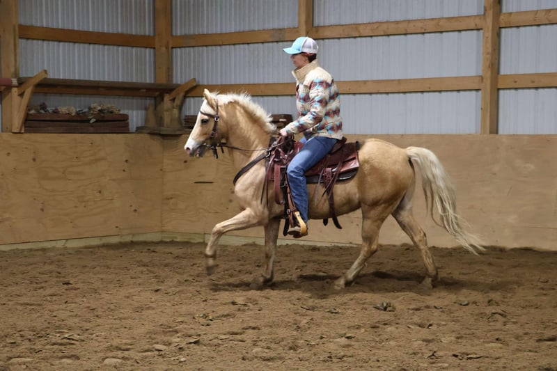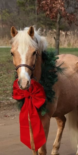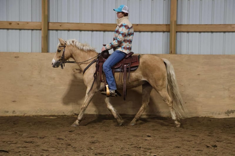 ONLINE AUCTION Place your bids at www.PlatinumEquineAuction.com Starting Bid $3500 Auction ends December 15th, 2024 Need a new saddle? Check out White Rock Saddles on our website or Facebook! Meet Biscuit or registered as “Wheels On The Bus” as we call him around the farm. This golden palomino gelding stands 13.1hh at 11 years old. He has a beautiful blonde mane and tail and the most darling face you will see. He is a grade welsh who is registered with the USEF. Biscuit has 3 nice gaits, a quiet walk, floaty flat kneed trot and a great canter. He has flying changes when asked. He has a nice uphill build making him the perfect mount for the little ones. Biscuit has been ridden both English and western by adults and kids alike. He holds his gaits easily and moves forward off of a cluck. Biscuit has worked summer camp teaching flat work and pole piles to beginners. He has also been jumped 2ft 3 and jumps in great form. He has been shown in hunter shows. Biscuits abilities shine past the arena as this boy loves the trails, deep woods, water, deer no problem. He’s a drop the reins and enjoy the scenes kind of guy. He has also dabbled in some barrel racing, poles and flags! He is super game for all of it. Biscuit has proven him self to be a fantastic teacher and versatile pony. Biscuit lives in Howell MI 48855. Enjoy the video and give me a call or text at 248-390-6831 to meet him. Boarding is available until Christmas if you would like to get this guy under the tree! ONLINE AUCTION Place your bids at www.PlatinumEquineAuction.com Starting Bid $3500 Auction ends December 15th, 2024 Need a new saddle? Check out White Rock Saddles on our website or Facebook!