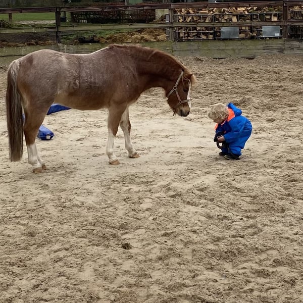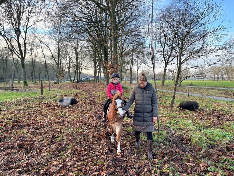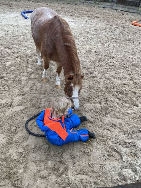 Deze welsh a pony is echt een prachtverschijning. In de omgang is het een heel lieve en eerlijke pony, aandacht en "spelen" vindt hij heel leuk. Ook braaf op de wasplaats, bijt en slaat absoluut niet en is zonder problemen te scheren. Grond en longe werk kent hij inmiddels goed en doet dit goed. Hij kijk niet op hindernissen en stapt of springt overal overheen. Hij is alleen nog niet bevestigd zadelmak. Er heeft af en toe een jong kindje opgezeten, maar dan is hij wel eerst gelongeerd en houden wel hem vast. Voor een kind moet hij dus wel eerst nog aangereden worden.