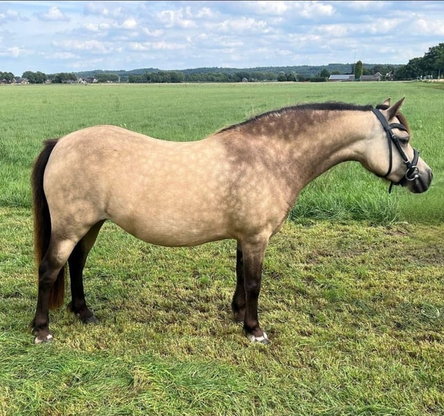 Aangeboden: Prachtige zilvervalk merrie! Ontmoet Panache, een lieve merrie van bijna 10 jaar. We hebben haar 3 jaar en hebben haar zelf zadelmak gemaakt. Ze pakt het goed op en is nergens bang voor. De galop behoeft nog wat aandacht, maar dit doet ze inmiddels best wel heel erg goed. Het sturen in stap en draf gaat al goed, net zoals het reageren op het been. Panache houdt van knuffelen en buitenritjes. We zoeken een leuke ruiter die samen met haar wil groeien. Panache is niet geschikt voor een onzekere/beginnende ruiter. Ze heeft iemand nodig met al een beetje ervaring en die sterk in z'n schoenen staat. Anders kan ze nog wel eens bok geven. Ze vindt springen heel leuk en houdt van afwisseling. We denken dat ze ook geschikt zou zijn voor de kar, het werken aan de lange lijnen pakt ze heel goed op. Ze staat 24/7 buiten met een Welsh merrie, is ontwormd en bekapt. Normale prijsklasse. Filmpjes op aanvraag
