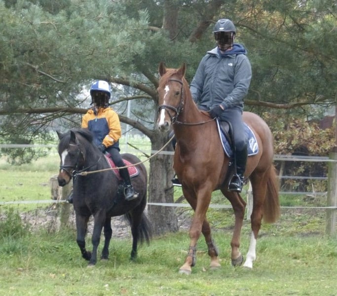 Our Welsh A pony mare "Mirte" has unfortunately become too small for our son. We would like to find her a new home with a family that has small children. Mirte is a very beautiful 11-year-old Welsh A mare. She is bay and stands 122 cm tall. She has a wonderful temperament and is absolutely gentle with children. As a lead pony, she stays at the right height, making it very pleasant to ride with small children. Older children can ride her independently in a group on trails. She goes through water on trails, enjoys jumping, and is familiar with the atmosphere of competitions. We can also imagine her as a driving pony (at least we once hitched her to a sled in winter, and she pulled it very nicely). Loading, farrier visits, and dental care are also no problem. Please feel free to reach out with any questions. If interested, I can also send a video.