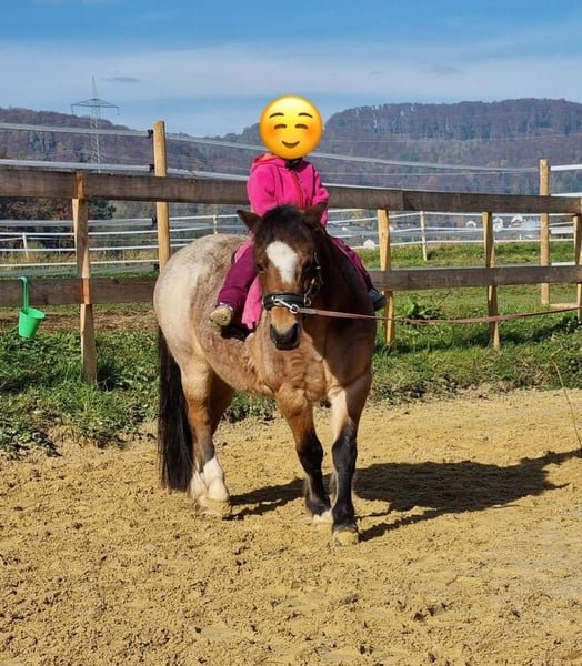 Für unser Schulpony ‚Queenie‘ suchen wir einen liebevollen Endplatz, an dem sie gekuschelt, gepflegt und von Kindern umsorgt und geritten wird. Auf ihr haben schon unzählige Kinder das Reiten gelernt. Aber nun ist es Zeit sie ein privates Zuhause abzugeben, da wie unsere Schulpferde nicht bis zuletzt ausnehmen möchten. Sie hat immer einen zuverlässigen Job gemacht und hat sich nun ihre Familie verdient. Queenie ist sehr brav, geht alleine und als Handpferd ins Gelände, ist verkehrssicher, schmiede- und verladefromm und lebt in einer grossen gemischten Offenstallherde. Sie ist in allen Belangen einfach nur unkompliziert und grossartig.