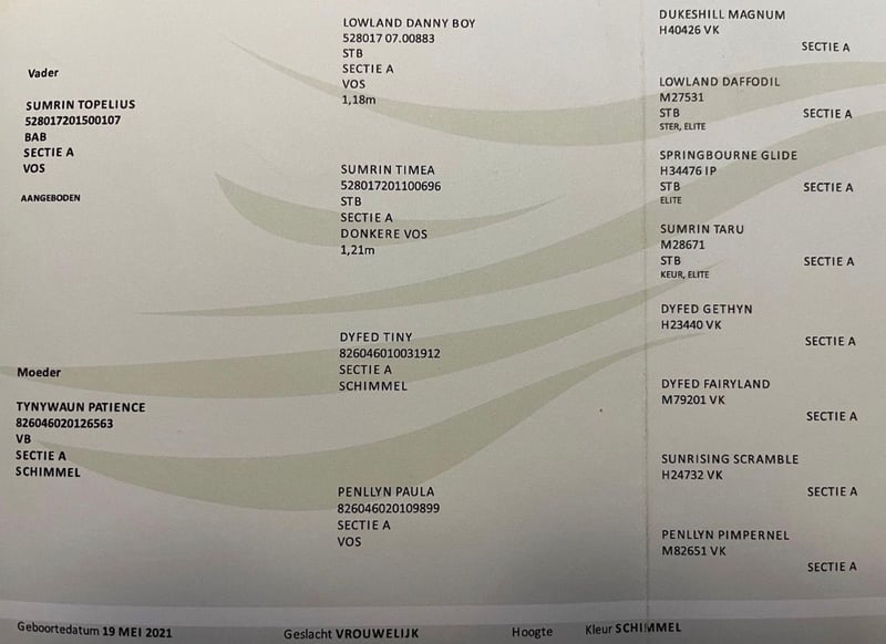 Welsh A merrie, bijna 5 jaar oud (geboren in 2021), ongeveer 120 cm hoog. Te rijden met één- en tweespannen, verkeersveilig – ook bij grotere voertuigen zeer braaf. Eerder al op kleinere evenementen rijdtechnisch voorgesteld, steeds probleemloos. Sportief ambitieus pony met een fijne, vriendelijke aard. Kent kinderen, is nog niet bereden – met de juiste begeleiding zeer geschikt als kinderpony. In het bezit van een paardenpaspoort met stamboekbewijs. De vermelde prijs is zonder accessoires. Reserveringen alleen met aanbetaling. Voorbehoud van fouten en tussentijdse verkoop. Wij hebben regelmatig meer rij- en kinderpony's in ons aanbod. Bij interesse of vragen graag telefonisch contact: 0174 8456302 Kamphuis Sporthorses GbR Uelsener Str. 56 49843 Halle