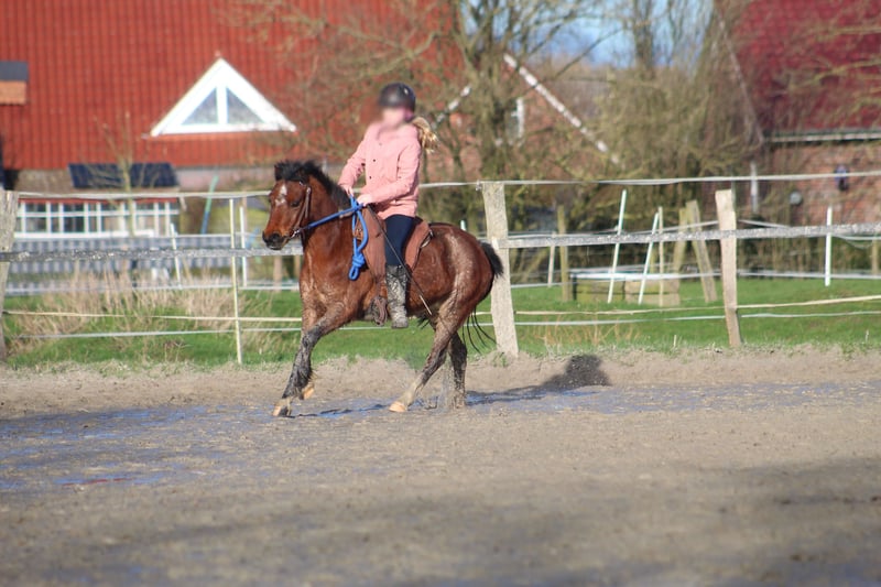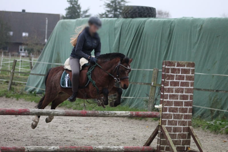 Wir verkaufen unsere Welsh A Stute Sunshine. Sie wurde 2020 geboren und ist ca. 1,20 m groß, deckt aber sehr gut ab. Sunshine ist geritten und kennt es, ohne Sattel geritten zu werden. Sunshine hat große Freude am springen. Sie geht gut ins Gelände, war schon alleine Ausreiten und lief auch regelmäßig als Handpferd mit. Ich kann sie mir auch gut als Schulpferd oder für Ponyspiele vorstellen. Sie wurde außerdem schon vor dem Sulky und Schlitten gefahren und hat auch bereits den Reitplatz mit einem Reifen abgezogen. Sunshine geht sehr gut auf den Hänger und ist lieb in fremden Umgebungen. Wir waren mit ihr unter anderem schon beim Gelassenheits-Training, am Meer oder im See. Charakterlich ist sie typisch Stute, manchmal mit Pony-Manieren. Hat man jedoch ihr Herz gewonnen, geht sie mit einem durch das Feuer. Ansonsten ist sie, wenn sie nicht gelangweilt ist, sehr lieb im Umgang. Sie wurde regelmäßig entwurmt und wurde frisch geimpft. Sie ist Ekzemer, aber das haben wir sehr gut im Griff Sunshine ist ein Pony, das gerne arbeitet und nicht nur alle paar Tage beschäftigt werden möchte. Da wir ihr dies nicht ausreichend bieten können, suchen wir nun einen neuen Platz für sie.