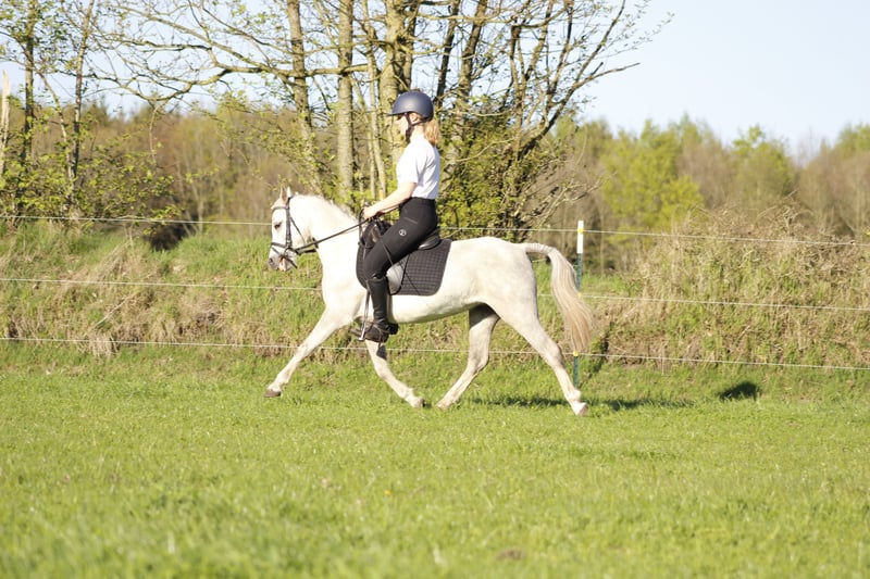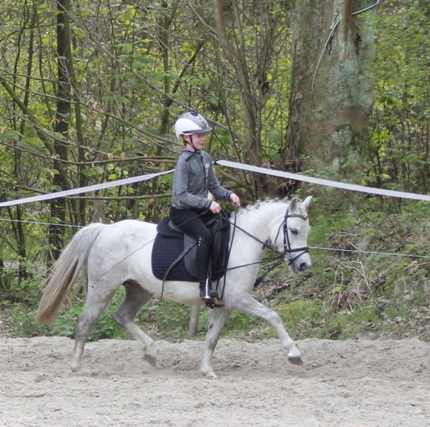 Dear children's pony! Enni has already been to a competition with a little girl and behaved really well. She has completed various off-site training sessions diligently. Whether it's jumping, dressage, or cross-country: the little mouse always wants to please and has real potential. She has always behaved impeccably with different riders here with us. Sensitive to the leg and good in the hand. Due to a slight cosmetic flaw, she is significantly undervalued.
