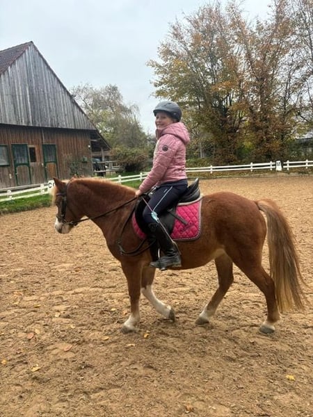 Wunderschöne Welsh-A Stute – Mayla (2016) – Kinderpony mit Herz! Rasse: Welsh A Name: Mayla Geboren: 2016 (9 Jahre) Geschlecht: Stute Farbe: Fuchs Lebensnummer: HUN K KMAG0210000 Mikrochip: Ja ✨ Beschreibung Mayla ist eine liebe, aufgeweckte Welsh-A Stute, die besonders für Kinder ein toller Partner ist. Sie zeigt sich im täglichen Umgang brav, freundlich und nervenstark. Beim Putzen, Führen und Reiten bleibt sie ruhig und gelassen. Sie kennt Reitkinder, wie auch auf dem Foto zu sehen ist, und zeigt sich im Training zuverlässig. Ideal für Einsteiger, kleine Reiter*innen oder als Familienpony. Ernährungszustand: gut Haut & Fell: gesund und glänzend Keine Narben Keine Tumoren Klinisch unauffällig Lediglich leichter Sonnenbrand im Maulbereich (kosmetisch) 🌿 Charakter & Eignung brav im Umgang gelassen mit Kindern freundlich und menschenbezogen ideal als Familienpony, Kinderpony, Führpony oder auch für kleine Reitanfänger