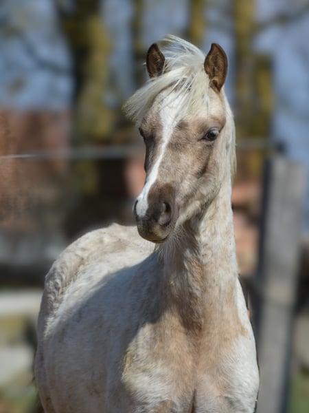 Kienbergs Chester C is a very typy Welsh B colt in the dream color Palomino Roan. Due to unreliable buyers, this spirited little gem is now looking for a new home. Both parents are ridden, well-built, and very tall (mother approximately 1.35 m, sire licensed and over 1.40 m), and they come from our breeding program. Chester is age-appropriately handled and is currently stabled with a colorful red dun foal by Cadlanvalley Deluxe x Breeton Toy, who is also seeking a new home. Both boys were awarded premium as foals, are truly beautiful, and look forward to welcoming pony-loving visitors.
