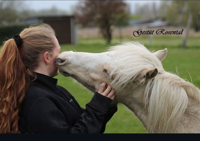 Il nostro splendido Dancer è arrivato da noi come puledro e è cresciuto in modo sano e robusto, circondato da altri giovani stalloni e stalloni da monta. È stato lavorato alla longe, conosce il salto libero, è abituato a passeggiate che lo rendono sicuro in strada e si mostra estremamente educato nel rapporto con le persone. Si trova nel box accanto a delle fattrici e, dalla stagione autunnale fino all'inverno, condivide il paddock con altri stalloni da monta e giovani stalloni. Alla longe, conosce già il peso del cavaliere e ha dimostrato fin dal primo tentativo di essere molto tranquillo e disponibile con questo compito. Dancer è stato convalidato nel 2025 dal Verband Mecklenburg-Vorpommern. Era destinato a essere impiegato principalmente nella nostra selezione di ponies da dressage, in particolare per coprire fattrici di taglia abbastanza grande a mano, ma questa mansione gli risultava difficile. I consigli di altri allevatori sono troppo rischiosi per noi, motivo per cui purtroppo è attualmente senza incarico. È rimasto incinta di una fattrice di circa 1,43 m e si è dimostrato molto gentile sia con la fattrice che durante il servizio di monta, sia a mano che con la femmina. Lo vendiamo a malincuore come stallone o, in alternativa, lo castriamo per poterlo addestrare come pony per bambini. Sono disponibili alcune foto, anche di quando era stallone giovane. L'immagine con le campane è la più recente: da allora ha preso un po' di peso e ora appare più robusto. Siamo disponibili a conoscerlo di persona, previo interesse serio.