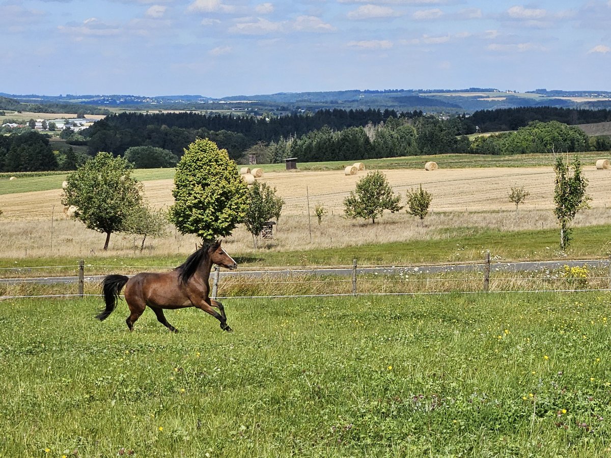 Wir möchten nach langem Übelegen unseren Levi verkaufen, vorausgesetzt wir finden ein geeignetes Zuhause! Es ist kein Notverkauf. Aber wir denken, dass wir ihm nicht das Zuhause bieten können, was er bräuchte. Levi ist ein 10-jähriges Welsh-Pony. Wir haben ihn vor knapp 2 Jahren aus einer (fast ausschließlichen) Boxenhaltung übernommen. Bei uns steht er 24/7 draußen im Offenstall. Wir haben ihn für pferdegestützte Pädagogik u. Therapie eingesetzt. Dabei war er unser verlässlichstes Pony! Er war von jedem zu führen, super toll mit den Kids, absolut unerschrocken, egal in welcher Situation. Als er ca 3 Monate bei uns war u. sehr zuverlässig circa 1-2 mal/Woche in den Ponygruppen mit wirklich leichter Arbeit eingespannt war, hat er auf einmal stark abgebaut. Diagnose: starke Magengeschwüre. Wir gehen davon aus, dass er schon vorher Probleme hatte, das bei uns dann aber irgendwann „ausgebrochen“ ist. Er wurde gastroskopiert, um eine genaue Diagnose stellen zu können und wurde daraufhin entsprechend über mehrere Wochen behandelt. Eine Kontrollgastroskopie hat gezeigt, dass der Magen wieder komplett in Ordnung ist! Daraufhin haben wir ihn langsam wieder mit zu Einzeleinheiten dazu genommen. Alles wieder keine schwere körperliche Arbeit. Und auch die Kopfarbeit/Konzentrationsphasen haben wir am Anfang von 5 Minuten ganz langsam gesteigert. Die Magengeschwüre haben ihn vom Verhalten ziemlich verändert gehabt. Er war oftmals sehr schreckhaft und zeigte sich häufig unentspannt. Wann er schreckte war nie vorherzusehen, es war immer ohne von außen ersichtlichen Grund. Selbst das einfach auf der Weide stehen hat ihn schon sehr gestresst. Levi ist super menschenbezogen! Wenn andere Pferde z.B. geputzt werden, kommt er und drängt sich förmlich auf. Er schmust gerne u. sucht ständig die Nähe, besonders die der Kinder! Inzwischen haben wir eine Jugendliche am Stall, die ihn mehrmals die Woche reitet. Er wird ausschließlich gebisslos und mit einem Reitpad geritten und war mittlerweile auch schon alleine mit dem Mädel im Gelände. Er macht das SO GUT! Beim Reiten ist er überhaupt nicht schreckhaft. Er macht das, als hätte er nie etwas anderes getan; als hätte ihm das Reiten "gefehlt". Seitdem ist er von seinem ganzen Verhalten her deutlich entspannter und ausgeglichener, wie ausgewechselt! Wir haben ihn seitdem nur einmal noch mit den Kids eingesetzt zum geführten Reiten. Dabei war er brav und recht entspannt. Ich arbeite überwiegend mit kleinen Kids, viel mit mehreren Kids in Gruppen. Und wir finden einfach nicht mehr richtig zusammen. Mit seiner Pflege-/Reitbeteiligung klappt es super. Aber er und ich das passt einfach nicht mehr so gut wie am Anfang und ich habe die Hoffnung mittlerweile aufgegeben, dass wir wieder richtig zueinander finden. Ich kann ihn aufgrund seiner Größe und meines Gewichtes nicht Reiten. Und habe ihn eben halt auch für die Arbeit mit den Kindern gekauft und das scheint für ihn so einfach nicht (mehr) zu passen. Es ist absolut gegen meine Vorstellung, dass er irgendwo in eine Box gesperrt wird. Und ich denke, dass ihm 1-2 feste Bezugspersonen sehr gut tun würden! Levi ist definitiv sensibel und feinfühlig. Aber auch arbeitswillig und wirklich deutlich auf der Suche nach Beschäftigung. In der Herde ist Levi verträglich. Er beißt und tritt hier nicht. Als wir ihn gekauft haben, hat er sich ohne Probleme verladen lassen. Seitdem wurde er nicht mehr verladen, dazu kann ich also aktuell keine Aussage machen. Beim Hufe machen ist er brav. Zähne, Gastroskopie usw. hat er mit leichter Sedierung immer sehr brav mitgemacht! Die Magengeschwür-Geschichte hat ihn stark abbauen lassen. Er hat schon sehr gut zugenommen, verträgt aber noch ein paar Kilo mehr auf den Rippen und vor allem noch einiges an Muskulatur! Er könnte auch einfach weiter so mitlaufen wie bisher. Aber ich wünsche mir für ihn einfach, dass es ihm allgemein besser geht und er irgendwo vielleicht glücklicher werden kann, als es bei uns möglich ist!