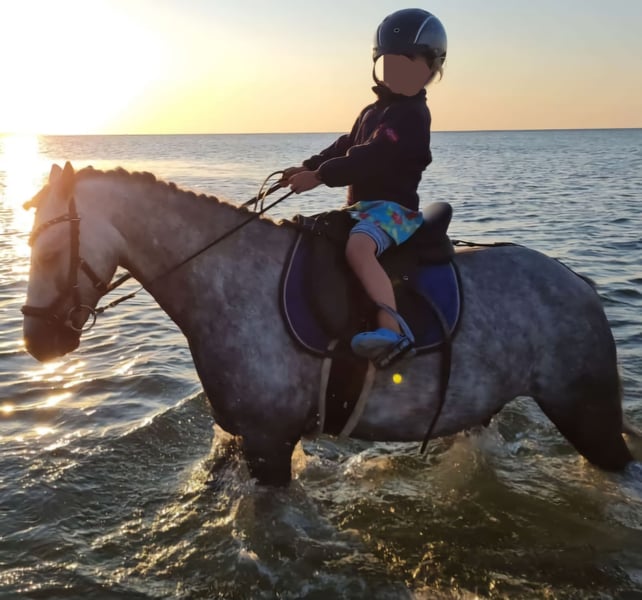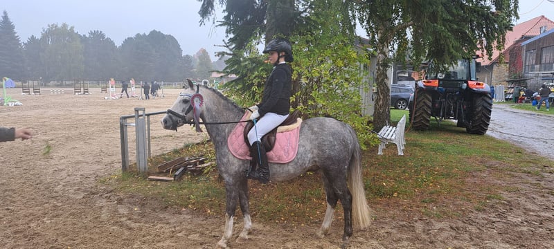 We are selling our beautiful, child-friendly 10-year-old Welsh gelding Johnny, who stands at a wonderful height of 132 cm. Johnny has won numerous show jumping and dressage WBO competitions or has been successfully placed. Due to his dual talent, he excels in both dressage and jumping with his incredible performances. Thanks to his absolute rideability and his patient, loving nature, even the smallest beginner riders can ride and jump him alone in the arena or on the trails. The children can also have fun riding tricks on him. This is possible on the lunge line or even while riding freely. When riding with a pad and neck ring, Johnny remains calm and responds to the slightest aids and the children's voice. Johnny is always reliable and calm. Bucking, rearing, and rushing are completely foreign to him. When riding, he is not easily distracted by the environment, making it easy to ride him in unfamiliar places. He is just as reliable in the field, galloping over stubble fields and going into the water. With his jumping talent, he can easily clear an 80 cm course. He does this with courage and awareness. He does not know how to stop or run past jumps, making it possible for even smaller children to jump him. Always friendly in demeanor, Johnny is very attentive to the children. They can bring him in from the pasture alone, groom him, wash him off, braid his mane, etc., and prepare him for riding. Johnny is absolutely herd-compatible; he stands together with both mares and geldings in our open stable. Any child can load him into the trailer alone, making it fun to go to competitions or take trips with the trailer. We hope he finds a wonderful new home where he will be loved just as much and can teach another little rider how to ride. A valid vet check without findings has already been done for the sale. A treasure that is so rarely found. We would be happy to send videos of him via WhatsApp at 015236768283. Best regards.