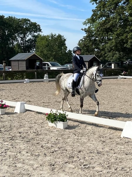 Wij zoeken voor onze geweldige Welsh-B ruin een nieuw 5* thuis, omdat mijn dochter helaas te groot voor hem wordt. Hij is nu 4,5 jaar bij ons en heeft met mijn dochter talloze successen behaald (A-Dressuur, winst en meerdere hoge plaatsen, veel plaatsingen in E, waaronder ook 2e in de finale van de U14 Dressuur Cup). Samen waren ze ook landskampioen in de vierkamp U12. Hij is zeer goed opgeleid en beheerst al L-Dressuur oefeningen. Er zijn weinig pony's van zijn grootte die over dit opleidingsniveau (en Rimondo-punten) beschikken. Onze pony springt ook goed; hij houdt erg van het werken met stangen en cavaletti. Hij gaat alleen en in groep op buitenrit en heeft geen slechte gewoonten zoals bokken of stijgen. Je kunt hem ook zonder zadel of met halster rijden. Overnachtingstoernooien, clinics, vakanties zijn allemaal geen probleem met hem; dat hebben we vaak gedaan. Hij laat zich probleemloos en kinderlijk eenvoudig laden, is braaf bij de smid en dierenarts. In de omgang is hij een absolute schat, zelfs de kleinsten kunnen hem alleen leiden of van de wei halen, hij trekt niet naar het gras, enz. Tijdens het poetsen is hij heel lief en zeer geduldig. Bij het rijden wensen we ons een kind dat al veilig alleen in de basisgangen rijdt, geen absolute beginners. Als iemand meereist, zou dat ook zeker kunnen. Hij gaat aan de longe (dubbellonge kent hij ook heel goed) en met longeersingels. Hij is met een klein meisje ook succesvol geweest in de leidingenklasse. Hij is ons absolute hartendief en de verkoop valt ons niet gemakkelijk; hij gaat alleen naar een zeer goed thuis met veel vrije ruimte. Bij ons staat hij in een paddockbox en overdag in een grote gemengde kudde, waar hij zich als de kleinste heel goed weet te handhaven. Passende zadels kunnen meegekocht worden. Andere uitrusting zoals bijvoorbeeld hoofdstel en talrijke dekens (Bucas) geven we mee en zijn al in de prijs inbegrepen. We kijken uit naar uw aanvraag!