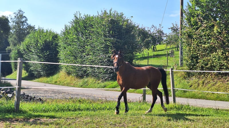 Con grande dispiacere devo separarmi dal mio pony castrone di 16 anni, Aragon. Aragon è alto 1,36 m, compatibile con il branco e adora essere coccolato e coinvolto nelle attività. Cerco per lui un paddock all'aperto, poiché soffre di artrosi al ginocchio anteriore destro. A causa dell'artrosi, può essere montato solo in modo molto limitato. La cavallerizza dovrebbe pesare non più di 40 kg. Aragon è un mix di Arabo e Welsh. Per noi, un posto stabile a lungo termine è più importante del prezzo.