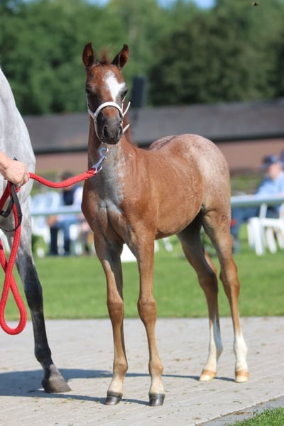 Showman is the 3rd foal out of Samorens Katinka by Waxwing Perrin x Glansevin Graffiti. He was the winning Welsh foal at the foal show and took 4th place at the Westphalian Small Horse Show in Münster. His sire Santiago was the champion foal at the Westphalian Small Horse Show in Münster last year and the year before last. He already has several licensed sons and offspring who are internationally successful up to advanced (S) level. Santiago's sire Schwalmprinz was reserve champion at the German Welsh Show and his grandsire won the Royal Welsh Show three times.