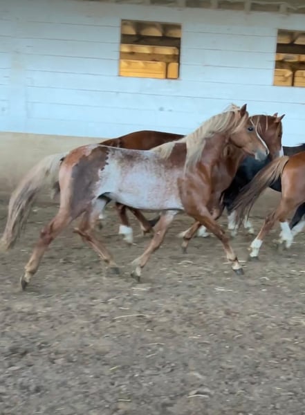 Finn ist ein einmalig gezeichneter Fuchs und somit ein absoluter Hingucker. Charakterlich ist er grundsätzlich neugierig, schickt dann aber doch lieber erstmal einen Kumpel vor, um die Lage zu checken. Sobald er weiß, worum es geht, ist er brav und unerschrocken. Finn ist gut auf beiden Händen in allen drei Grundgangarten longiert und kennt das Reitergewicht. Aufgrund eines Wachstumschubes kommt er gerade aus einer Pause, die wir genutzt haben, um uns den 2021ern zu widmen. Finn wohnt problemlos in einer Männer WG mit Ponys und Pferden. Er ordnet sich gut ein und macht absolut keinen Stress. Finn kann gerne kennengelernt und im Rahmen seines derzeitigen Standes ausprobiert werden. Dazu bitte telefonisch einen Termin ausmachen.