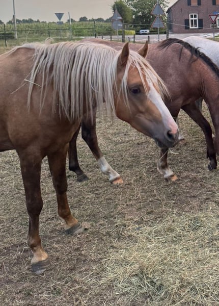 Dreamboy Pony mediano de 3,5 años (1,35 m) Recién castrado, muy bonito y con buen movimiento. No ha sido montado, pero está listo para comenzar a entrenar.