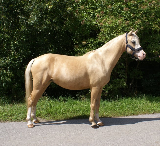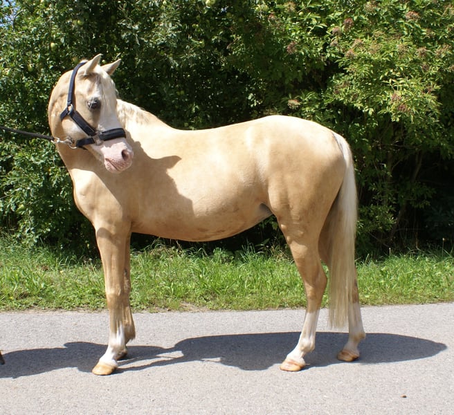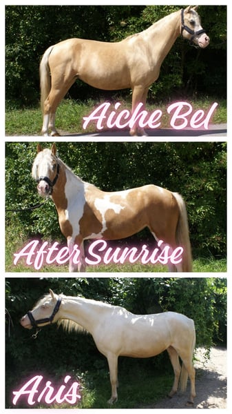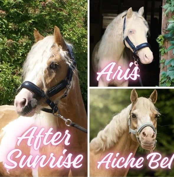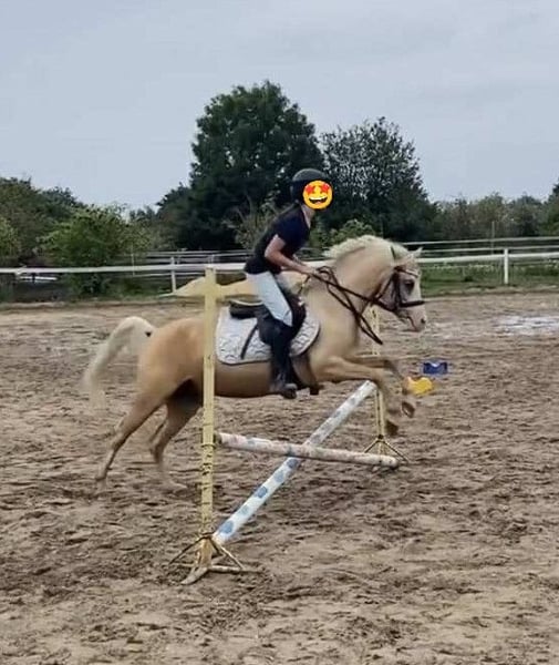 10-jährige ERFAHRENE Sportpony der Sektion B - Welsh Pony Stute Die zuckersüße Palomino-Stute ist bereit zu gewinnen! Erfahren in Mini LL Springwettbewerben unter Kindern. Vollständig gesund in jeder Hinsicht, korrekt und schön - mit einer außergewöhnlichen Farbe und sehr korrektem Bau. Ideal für ein ehrgeiziges Kind, um Wettbewerbe zu gewinnen. Aiche Bel hat eine Stockmaß von 128 cm. Unter dem Sattel ehrgeizig, gehorsam, sensibel auf Hilfen, kooperativ und brav. Sie arbeitet gerne und springt gerne. Farben, Untergründe usw. machen ihr nichts aus. Im Parcours hilft sie und kooperiert. Sie bewegt sich hervorragend, arbeitet mit der Schulter und galoppiert „bergauf“. Sie hat eine schöne Sprungtechnik und bewegt sich wie große Sportpferde. Sie geht brav an der Longe, im Cordeo, im Zaumzeug und ins Gelände. Steht schön im Transport, geht brav in den Trailer. Sie liebt Pflege, lässt sich brav bürsten und kämmen, ist aufmerksam und gelassen, achtet auf Kinder und respektiert den Menschen. Sie hebt alle Beine und hält sie selbst, damit es für die Kinder nicht zu schwer ist. DIE STUTE HAT KEINE MÄNGEL! Sie ist gesund, alles in Ordnung, keine Verletzungen, keine Unarten usw. Regelmäßig entwurmt, geimpft, unter tierärztlicher, zahnärztlicher und hufschmiedlicher Betreuung. Eignet sich für den Sport und die Zucht. Sie hat zwei schöne Fohlen gegeben. Ein lieber Pony, der sein Kind sucht. Verkauf nur mit sehr schwerem Herzen, wegen fehlendem Reiter. Nur in ein liebevolles Zuhause. Für ihr Kind würde das Pony praktisch alles tun und ist überambitioniert. Daher ist es uns wichtig, dass sie in eine Hand kommt, nicht in eine Schule. Aufgrund der emotionalen Bindung zu diesem Pferd ist es für uns sehr wichtig, wer ihr nächster Besitzer sein wird. Für die richtige Person besteht die Möglichkeit, den Preis zu verhandeln. Zu verkaufen sind auch zwei Töchter von Aishe. Die Stuten sind auf dem gemeinsamen Foto - gerne alle zusammen. Wir laden Personen ein, die wissen, was sie erwarten.