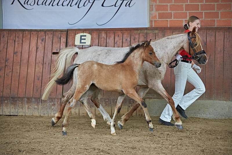 Zum Verkauf steht unsere bezaubernde Welsh B Stute Mariska mit einem Stockmaß von 1,28 m. Sie ist ein absolutes Traumpony für Kinder – verlässlich, nervenstark und immer freundlich im Umgang. Mariska ist für jeden Spaß zu haben: egal ob beim Reiten auf dem Platz, beim Ausritt im Gelände oder einfach beim gemeinsamen Kuscheln – sie bleibt stets ruhig und gelassen. Auch beim Freispringen zeigt sie Freude und Talent. Sie ist schmiede- und verladefromm, absolut unkompliziert im Handling und macht einfach immer alles brav mit. Dieses Jahr hat Mariska ihr erstes Fohlen zur Welt gebracht, das auf Anhieb ein Prämienfohlen wurde! Zudem wurde sie ins Stutbuch I eingetragen. Mariska ist 100 % kinderlieb und eignet sich perfekt als Reitpony für den Nachwuchs, der mit einem verlässlichen und liebenswerten Partner die Grundlagen des Reitens lernen möchte. In der Herde ist sie sehr sozial und verträglich, immer brav und ausgeglichen – einfach ein Pony zum Liebhaben! Ein echtes Familienpony, das jeden Tag Freude bereitet! Mariska eignet sich auch für Angstreiter.
