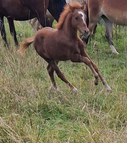 Ich suche für meine im Juli geborene Stute ein neues zu Hause nach dem Absetzen. Ihr Mutter ist eine absolut zuverlässige Stute, sowohl für Anfänger als auch als Kinderpony. Ihre Mutter ist Staatspr. Anwärterin und wurde bei der Eintraung in meinen Verband mit den Worten "zurecht Verb. Pr. " anerkannt. Ihr Vater stammt aus einer Verb. Pr. Stute mit überragenden Sportambitionen ab und sein Vater ist Pr. Sieger Hengst im fahren und gekört. Beide Seiten in der Abstammung beinhalten sehr viele bekannte und auch erfolgreiche Vorfahren, so wie Elite, Prämien und vielseitig ausgezeichnete Showerfolgen. Aber auch im Sport liefen bereits einige Vorfahren sehr erfolgreich, auch mit Kindern. Genaue Abstammung gerne bei Interesse auf Anfrage. Sie bekommt volle Papiere beim ZfdP. Die kleine selber war kaum auf der Welt und hatte absolut keine Angst vor Menschen. Seit die Kinder sie streicheln dürfen, wird sie nur noch gekuschelt (selbstversch. nur solange sie es auch möchte) Sie ist neugierig und unerschrocken. Bringt trotzdem, dem Alter entsprechend Elan mit und viel Lebensfreude. Sie wächst in der Herde auf und lernt somit bis zum Auszug noch alle wichtigen sozialen Kontakte. Sie liebt Menschen und bringt einen fabelhaften Charakter mit. So wie es aussieht wird sie später Zeitweise dunkel und könnte eine helle Mähne bekommen. Bis zum Absetzen kann sie Hufe geben, ist Halfter führig, kennt alles mögliche inkl dem Umgang mit Menschen und gerne mache ich für den kommenden Umzug auch schon Hänger Übungen. Kleine Hufpflege arbeiten kennt sie auch schon. Sie lässt grundsätzlich alles mit sich machen. Mit Kindern kommt sie sehr gut klar (selbst verst. immer unter Aufsicht von Erwachsenen) und lässt sich voller Freude streicheln, kuscheln und knuddeln. Sie fordert es sogar eher ein, (aber nicht zu aufdringlich und sie versteht auch ein nein mittlerweile) als das sie sich damit unwohl fühlt. Ich kann Sie mir sehr gut als zukünftiges Kinderpony oder Sportpony vorstellen. Wenn sie nach dem Vater kommt, bringt sie Springtalent mit. Sicher wäre sie auch fürs Fahren geeignet. Aber auch als Zuchtstute auf Grund ihrer tollen Abstammung und ihres schönen Gebäudes. Der Preis ist Verhandelbar. Ein gutes zu Hause bis zum Absetzen ist mir wichtiger. Aber verschenkt wird sie nicht und bleibt trotzdem der Qualität entsprechend noch im Rahmen. Bei Interesse und Fragen bitte hier schreiben, da ich telefonisch fast nicht erreichbar bin