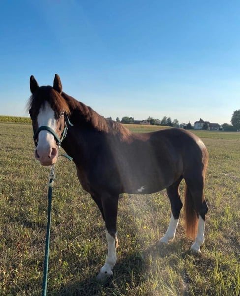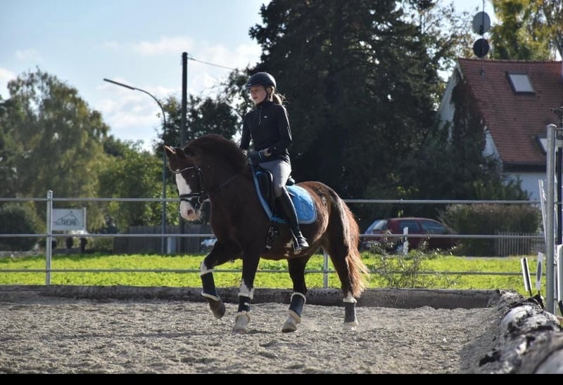 With a heavy heart, we have decided to sell our 21-year-old pony Mariah. Mariah is a Welsh B mare with a height of approximately 1.40m. She has been regularly dewormed and vaccinated, is well-behaved for the farrier and loading, and her teeth have also been regularly maintained. Due to a tendon injury, she has a special shoe on her front hoof, which she manages very well and provides her with optimal support. Mariah also has a pollen allergy that has developed into chronic coughing. Therefore, she must be fed exclusively with steamed hay, and with that, she is symptom-free. Mariah is fully capable of being worked and should be exercised extensively. Ideally, she would thrive in a paddock where she has the opportunity to be outdoors continuously. In the herd, she is rather submissive and avoids conflict. Mariah is well-mannered and absolutely clear-headed when handled. She is familiar with trail riding and the arena and goes out both alone and in a group. She is accustomed to lunging, double lunging, and groundwork. She also enjoys going for walks. Mariah is trained up to A-level and is a pony that is light in the hand. We hope that Mariah finds a new partner who will give her the attention she deserves and where she can stay until the end of her life. As we have experienced that trial rides are often taken advantage of, we charge a fee of €30 for the trial ride. Therefore, please only inquire if you are seriously interested.