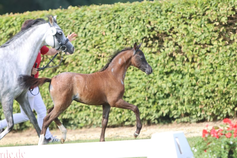 St. Tropez è il 2 ° puledro di Samorens Katinka. Come la sua sorellastra, ha ricevuto il bonus d'oro ed è diventata un puledro campione al Westphalian Small Horse Show di Münster. Il suo sire Santiago ha già diversi figli autorizzati e giumente premium dell'associazione, diversi puledri all'asta e diversi figli di grande successo fino ai partecipanti alla classe M e al Bundeschampionat. St. Tropez è costruito abbastanza correttamente e ha un carattere impeccabile. Conosce il puledro ABC. Le ultime 3 foto non sono ancora dei genitori Samorens Katinka e Santiago. Foto: Jandke /Grede/Hecker