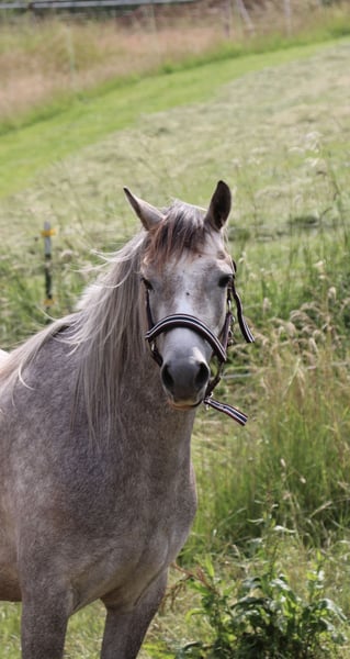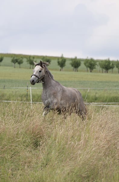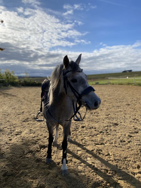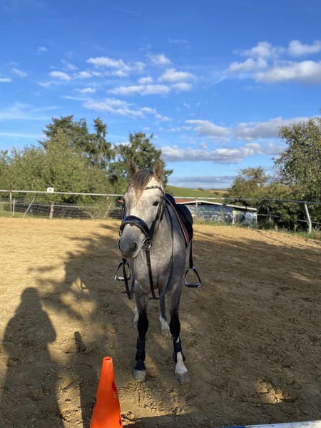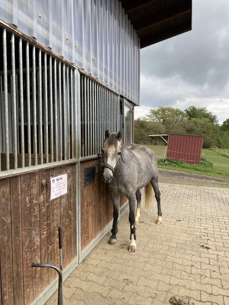Zum Verkauf steht meine bildhübsche, gesunde Welsh B-Ponystute Elisenhof’s Leona. 5 Jahre alt, Schimmel, Stockmaß aktuell ca. 1,37 m. Leona überzeugt durch drei sehr gute Grundgangarten, eine hochwertige Abstammung aus bewährter Zucht (Elisenhof-Linie – bekannt für typvolle, leistungsstarke Ponys) und vielseitiges Talent. Besonders interessant für Züchter: Sie bringt hervorragendes Blut und Potenzial für typvolle, bewegungsstarke Fohlen mit! Sie ist herdenverträglich in gemischter Herde (eher rangniedrig, friedlich), intelligent und talentiert. Leona ist eingeritten, kennt Ausritte im Gelände, Dressur- und Stangenarbeit auf dem Platz sowie Freispringen – hier zeigt sie echtes Springvermögen. Ursprünglich als Schulpony geplant, hat sie sich unter dem Sattel jedoch als nicht unkompliziert erwiesen: Sie steigt immer wieder (teilweise stark), weshalb sie definitiv nicht für Schulbetrieb, Anfänger, Kinder oder normale Freizeitreiter geeignet ist. Nur für sehr erfahrene, reiterlich sichere Personen mit viel Fingerspitzengefühl oder als reine Zuchtstute abzugeben. Gesundheitlich unauffällig (keine bekannten organischen Ursachen). Im Umgang ist Leona lieb: Lässt sich gerne putzen, gibt brav die Hufe, schmiedefromm– sie braucht einfach eine konsequente, aber faire und erfahrene Bezugsperson, die sie versteht und fördert. Ein Pony mit viel Qualität, Charakter und Potenzial, das in die richtigen (fördernden!) Hände gehört – sei es zur weiteren Ausbildung oder als wertvolle Zuchtstute
