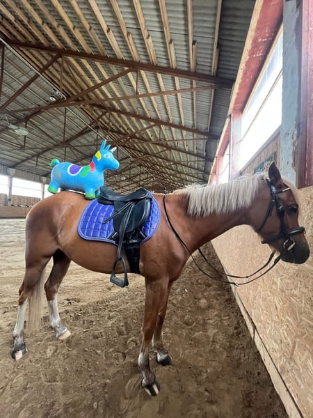 **For Sale: Talented Pony Mare** Are you looking for a reliable and skilled companion? Meet our wonderful mare, born in 2020. This handsome horse has a gentle disposition and is perfect for riders of all levels. - Friendly and easy to handle, making her suitable for both beginners and experienced riders. - Well-trained and responsive, she excels in jumping. - In excellent health with regular veterinary care and up-to-date vaccinations -This promising young pony has successfully competed at lower heights, appropriate for its age, and has shown great potential. At home, it confidently jumps courses up to 90 cm. Well-schooled with a solid foundation in flatwork, and also enjoys hacking out in the woods. A versatile and willing partner with plenty of room to progress. This mare is not just a pony; she’s a loyal partner ready to take you on new adventures. If you’re interested in adding a wonderful addition to your equestrian family, please reach out for more details or to schedule a visit. Don’t miss out on this fantastic opportunity to own a remarkable horse!
