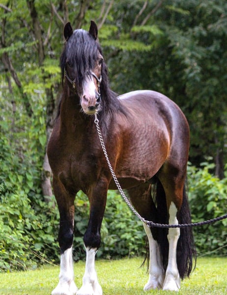 Welsh Cob Section C, stallion, 18 years old, black-brown with four white socks, 1.34m height at the withers. Suitability: Dressage - Cross-country - Jumping - Breeding On behalf of the client: Lord William… …immediately catches the eye of his viewers with his incomparable presence and chic, embodying the perfect original type of the Welsh C pony. He is bred from old English, established bloodlines, which is reflected in his entire appearance. An incredibly typy pony stallion, he was licensed in England under the name "Three-B William." He is equipped with above-average basic gaits and has a very fine, attentive temperament. Lord William is solidly trained and is easily ridden in the basic gaits by youths and small adults. His quick responsiveness and trust make daily work with him a true pleasure. Under saddle and on the ground, he has been trained in classical dressage basics, thus responding well to aids, joyfully jumps the cross-country course, and enjoys going out on trail rides. He has already participated in several courses at the stable, fulfilling the wishes of many young riders, such as passing a riding badge. Additionally, he is familiar with typical stable activities like children, dogs, and other horses coming and going, and riding in the arena with other horses; he remains very relaxed in all situations. With this miniature prince, you will attract all eyes! To us, he is a "light being" and is characterized by his soulful nature, which exhibits human-like traits. Only those who are receptive will understand him. Lord William has unmistakably left his "stamp" on all his previous foals, recognizable by their markings, beautiful heads, expression, and fabulous character. His offspring in various age groups can be seen on site. Of course, he has been regularly dewormed, osteopathically checked, and presented to the farrier (barefoot). He is socialized and has previously been kept with a gelding. Currently, he lives in a paddock and only lightly scratches himself in the summer. Location: DE - 83075 Au - Bad Feilnbach For more information and pictures, as well as contact, exclusively at: https://wow-pferd.de/horse/lord_william/ Mobile: +49 151 15227320