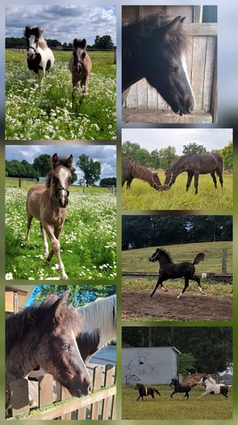 Ich bin Mogli, bin am 7.5.25 geboren und suche ein neues Zuhause. Ich bin ein super neugieriger, mutiger Kerl. Anhänger fahren, Anbinden und putzen, sich überall anfassen und führen lassen sind garkein Problem für mich. Ich bin wirklich ne coole Socke. Meine Mama ist eine ca. 1,25m große, kompakte Ponystute und mein Papa ist ca. 10cm größer *letzes Bild. Da ich jetzt schon so lange Beine habe vermuten alle das ich locker Papa's Größe erreiche. Aktuell lebe ich mit zwei weiteren Jungs im Offenstall, das klappt prima. Falls du mehr über mich erfahren möchtest melde dich gerne. Mein bester Freund Odin ist am 19.05.2024 geboren und sucht auch ein neues Zuhause. Odin ist für sein Alter absolut artig und lieb. Er kennt Kinder und alles was dazu gehört. Er zeigt keinerlei Hengstmanieren und geht artig durchs Gelände spazieren. Seine Eltern sind 90cm und 1,10m. Dieses Maß wird er auch bekommen. Ich denke er könnte ein tolles Kinder oder Kutschpony werden. Für weitere Informationen melde dich gerne
