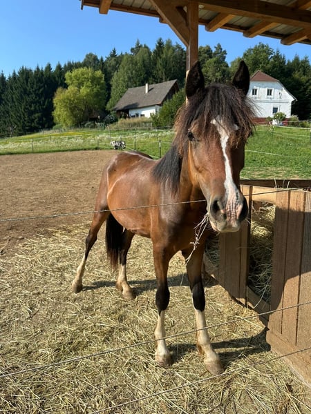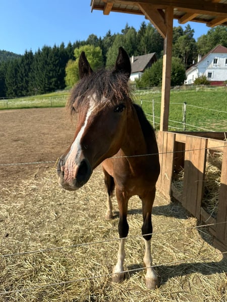 Ich biete meinen Welsh C Jährling (Hengstanwärter) an. Dunkelbraun mit schöner Stirnblesse. Endmaß ca. 138–140 cm. Brav, neugierig und kinderfreundlich. Das Fohlen-ABC wurde vollständig gelernt: halfterführig, Hufe geben, Schmied gewohnt, regelmäßig entwurmt und geimpft. ➡️ Aus privaten/finanziellen Gründen in liebevolle Hände abzugeben.