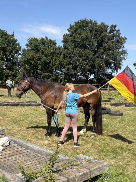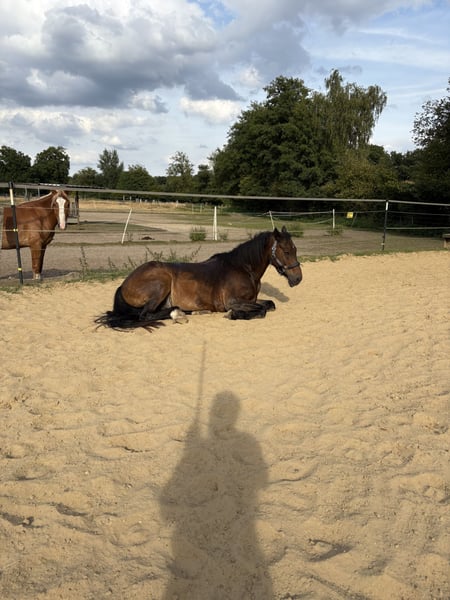 Zum verkauf steht dieser tolle Wallach. Gelände, Turnier, Barhuf, fremde Hallen, Trail Parks, Verladen, Schmied, Fremdreiter, Kindergeburtstag…. Er kennt ALLES mögliche und macht auch alles mit. Allein oder auch in der Gruppe. Super verträglich mit allen Pferden und sehr Menschenbezogen. Er ist eher schwerfuttrig, brauch also mehr wie andere. 24/7 Weide und Heu ist ein muss, da er sonst abbaut. Er läuft brav unter kleinen Kindern, arbeitet aber auch super mit, wenn er gefordert wird. Bei regelmäßigen Galoppstrecken nimmt er den Start manchmal selbst in die Hand. Springen kann er nicht. Da hat er einfach kein Talent für. Bei feuchtem Wetter hustet er mal. Ist vom Tierarzt aber abgeklärt. Medis brauch er nicht. Er geht nur in aller beste Hände. Keine Händler oder Reitschulen. Sein Zubehör darf er gern mitnehmen. Western- oder Dessursattel, Trense, Pad, Decke, Putzzeug…